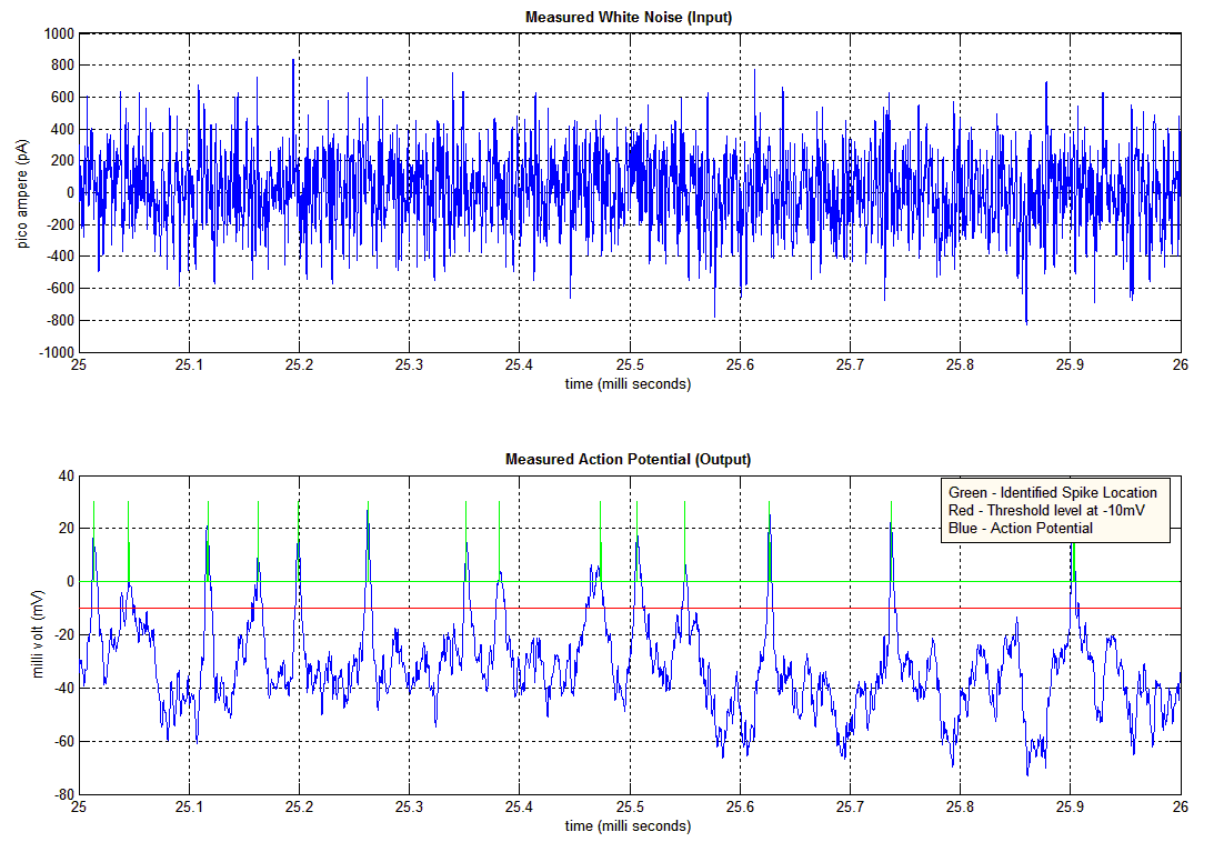 -- Stimulate system with microelectrode (See Figure: Top) under voltage clamp with white noise in amplitude and frequency range of interest.