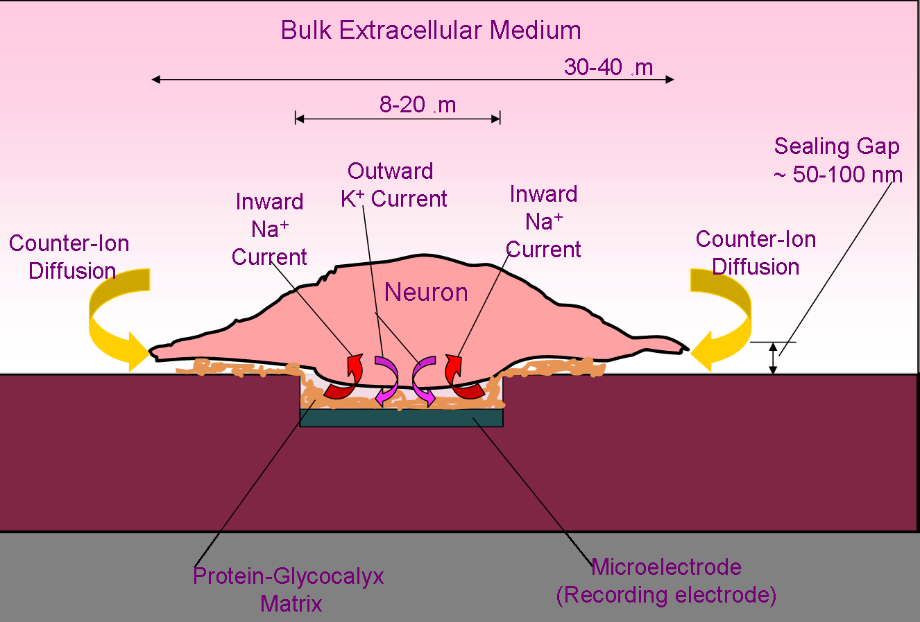 -- Low signal to noise ratio - signal attenuation due to counter-ion diffusion from the bulk extracellular medium