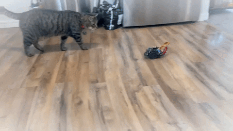 A device that scurries around the house like a mouse.The goal is to entice a cat into attacking it. AutonoMouse is self-reliant, with its own charging plate so it can continue entertain a cat for hours with no human interaction. However, pet owners can play with their pet remotely via a Web app.